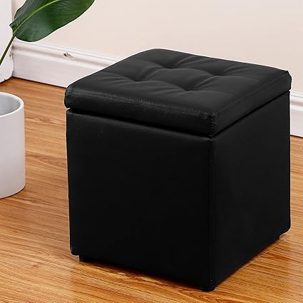 Exqui Storage Ottoman Upholstered Footstool Change Shoe Storage Stool Black With Revealable Padded Seat For Living Room Bedroom 30x30x35cm D234 30cm Bk Amazon Co Uk Home Kitchen